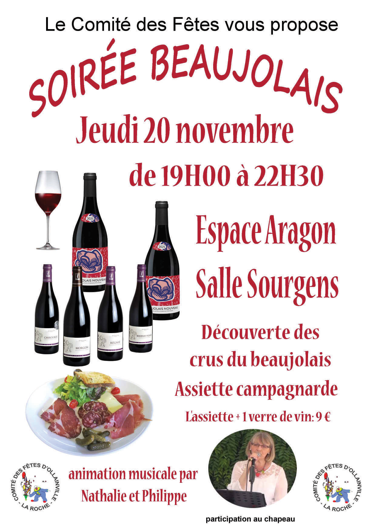 Le Comité des Fêtes d’Ollainville vous invite à partager un moment convivial à l’occasion de la Soirée Beaujolais.