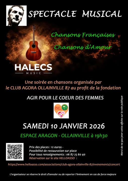 Une soirée qui fait battre le cœur ! Chansons françaises & chansons d’amour Samedi 10 janvier 2026 – 19h30 Espace Aragon – Ollainville Concert organisé par le Club Agora Ollainville