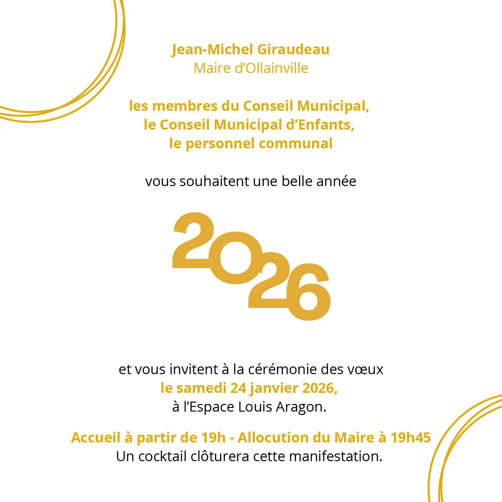 🕖 Accueil dès 19h – Allocution du Maire à 19h45