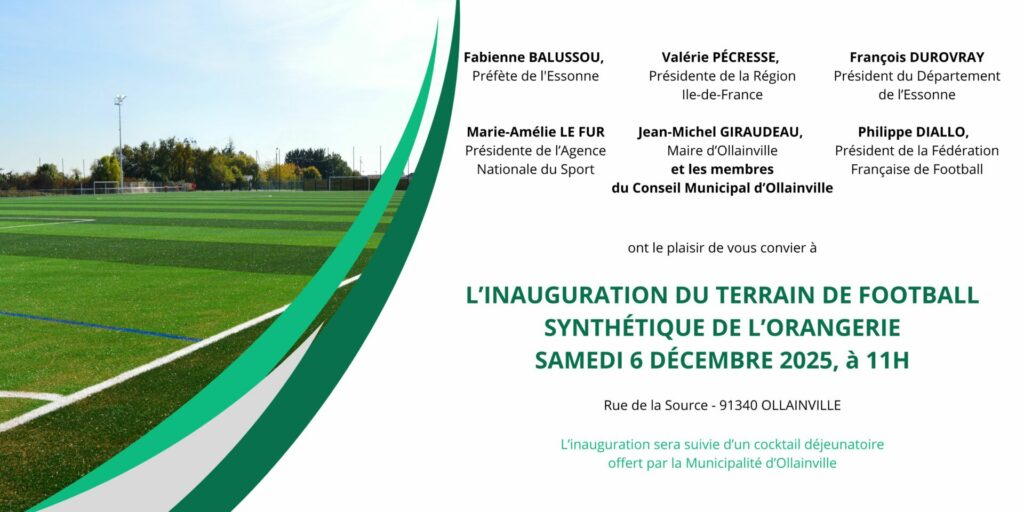 L’inauguration du terrain de football synthétique de l’Orangerie aura lieu le samedi 6 décembre 2025, à 11h.